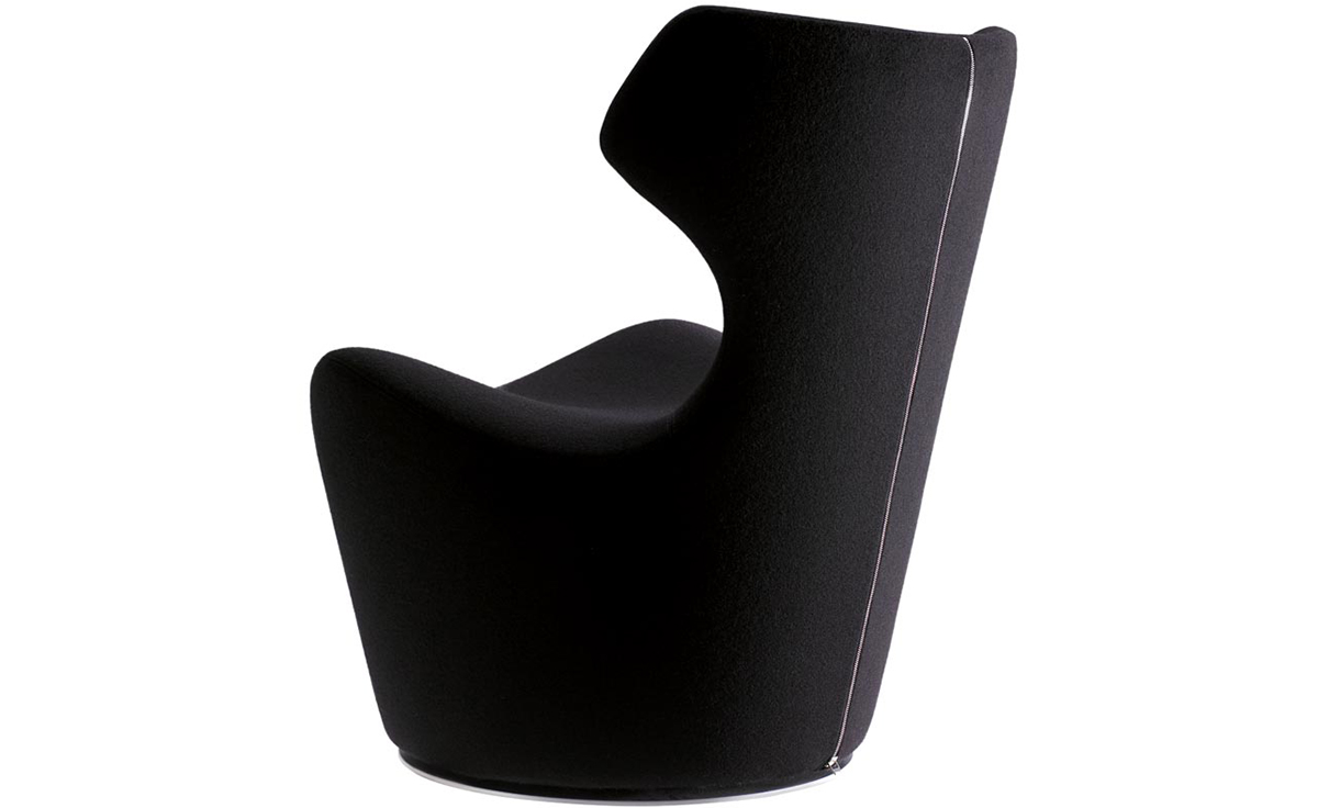 Grande Papilio 再一次展現了日本設計師深澤直人對於比例和形式的充分掌握。形式上和諧平衡的雕塑質地,隨著流暢的椅背弧度自然而然的流動著。椅背個性強烈的金屬拉鍊提供了外覆布料、皮革襯墊更換的功能性需求。