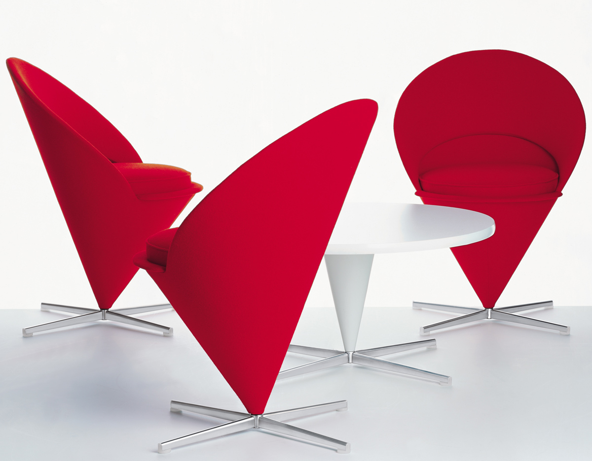 Cone Chair 讓 Verner Panton 引燃國際對他的注目,以鋼管骨架塑形而出的幾何造型,外覆羊毛布料或是皮革,在當時崇尚自然材質的北歐風格裡獨樹一幟。原本 Verner Panton 只是想替家人所開設的餐廳設計出一張特別的椅子,當紅色的 Cone Chair 出現在餐廳後,立即被家具商看上而簽下生產,隨之而來,大量的雜誌媒體披露,也讓一張椅子產生了全球為之瘋狂的震撼力,一直晃盪到歐洲以外的地方。緊接著 Cone Chair 的成功,隔年亮相的 Heart Cone Chair 也再次成為全球設計話題焦點。