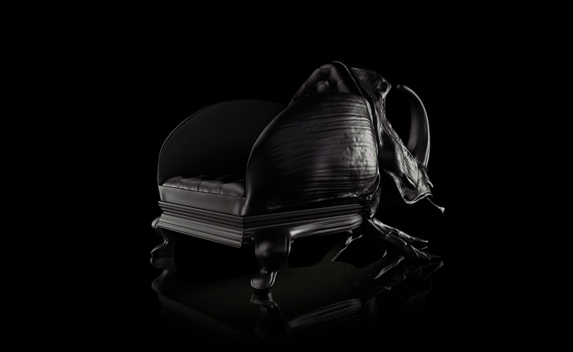 "西班牙设计师 Maximo Riera 设计了一组包括章鱼、犀牛、海象、狮子等在内的 15 件动物造型座椅系列皮椅。这个系列的动物椅集合了不同的物种,从哺乳动物到爬行动物,甚至包括昆虫。每个设计都保留了动物的自然活力,同时又准确还原动物的外观特征。这些动物椅的初衷是一种尝试,希望以动物的栖息来反映和捕捉大自然的美,并向我们星球上的整个动物王国致敬。设计师除了表现动物的野性美,也在善意的提醒人们要维持生态的平衡,尤其对濒危物种多加关注,以实现人与自然的相互依赖和谐共存。这次他的动物王座再添一员——限量版甲虫椅(Beetle Chair)。不要会错意,这个甲虫既然能成为暗黑帝国的一员,当然也不会是可爱傻气的七星瓢虫造型,这个甲虫长著大大的角,背上还突起坚硬的盔甲,六只带刺的脚配搭著獠牙,又是一副狰狞面孔,和之前的设计非常统一。甲虫椅子中集合内一个新的转折,欢迎广大昆虫物种,这是地球上最多样化的群体动物。 关于设计,座位部分位于外壳内覆盖翅膀,形成骨骼和保护动物。 甲虫的形态适应的审美功能,允许框架的构成和外在的数据被认为没有任何中断。"