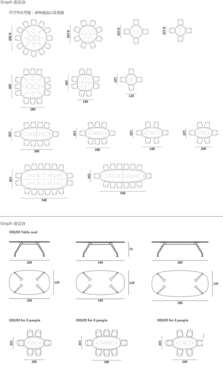 Graph 会议台 系列尺寸/示意图