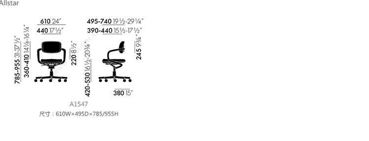 Allstar 职员椅 系列尺寸/示意图
