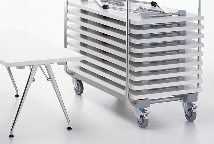 凭借他的Click设计,Alberto Meda创造了一个功能强大的折叠桌。 由于平面折叠机制和优雅的腿部线条,Click看起来不像普通的折叠桌 - 为了增加便利性,只需按一下按钮就可以折叠它的腿。 它有三种尺寸以及一套实用的十张桌子,带有一个可容纳所有十张桌子的堆垛车。
