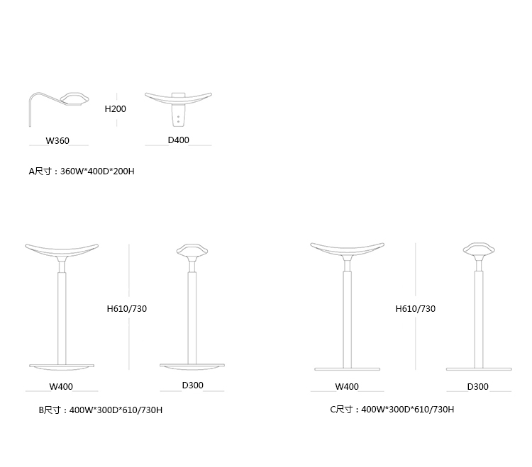 C:400W*300D*610/730H -