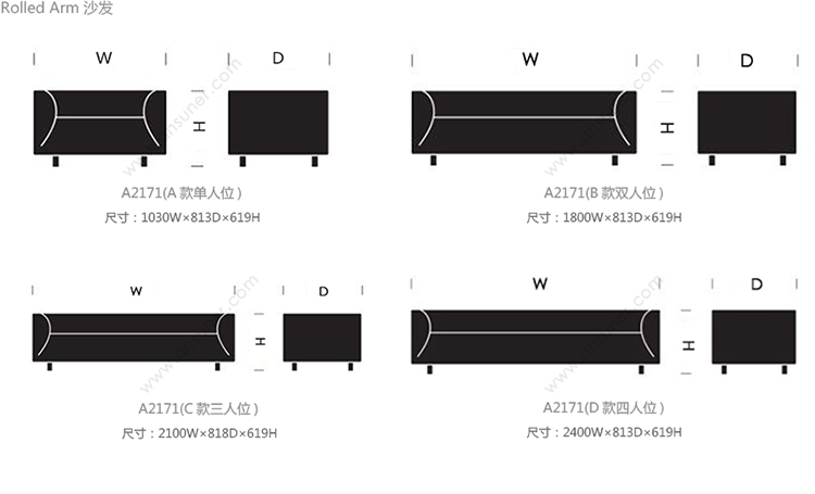 Rolled Arm 系列尺寸/示意图