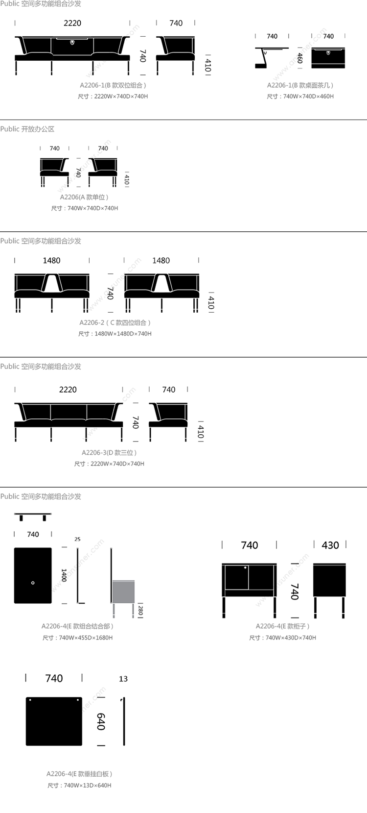 Public 系列尺寸/示意图