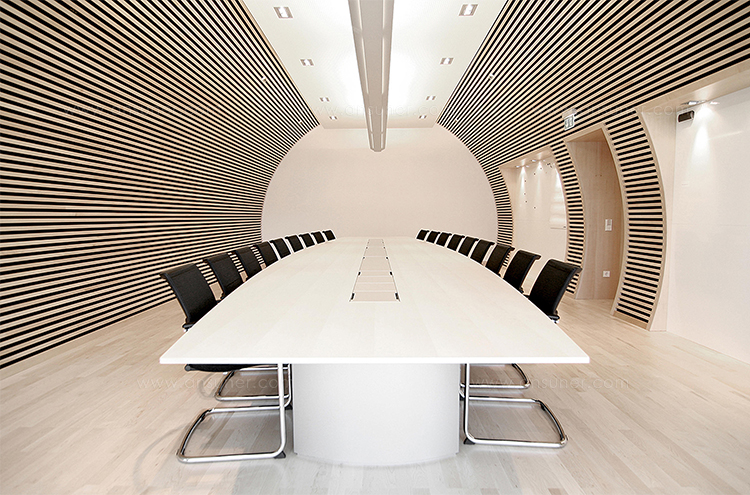 船形或椭圆形为基本形状的高级会议桌。优雅的外形之下,椭圆形、直线形桌腿或整体的桌下机构,可完美收纳走线及隐蔽多媒体设备。中央多媒体槽完美的整合了投影设备和多媒体接口。表面材料可选白色特殊树脂,实木贴面,烤漆和层压板。