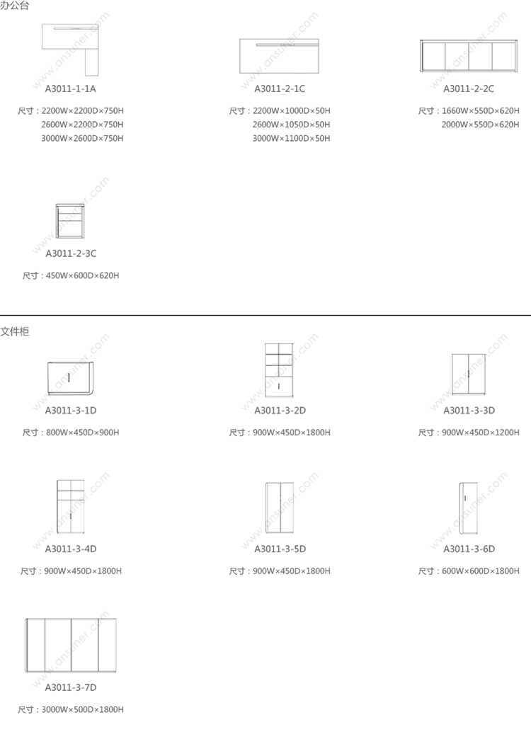 办公台 系列尺寸/示意图