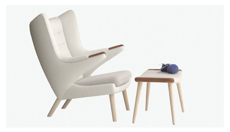 "熊椅(Papa Bear Chair)是Hans J.Wegner在1951年设计的时尚家具,又称为 ""Teddy Bear chair""泰迪熊椅。Hans J.Wegner设计的这款椅子是一款休闲躺椅,大气时尚,线条优美,稳健而优雅。 实木脚让人感觉非常有质感,高靠背设计符合人体的构造,放在书房或者是办公室,躺下来看看书或者是休息一会,亦或者感受一下自然的静谧,既低调内敛,又雍容舒适。 相比较其他一些躺椅的设计,熊椅的设计更加的注重稳重、传统、内敛的美,兼顾舒适和大气。