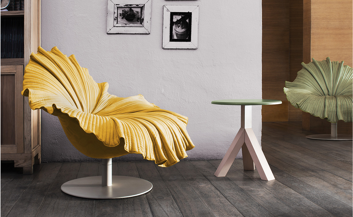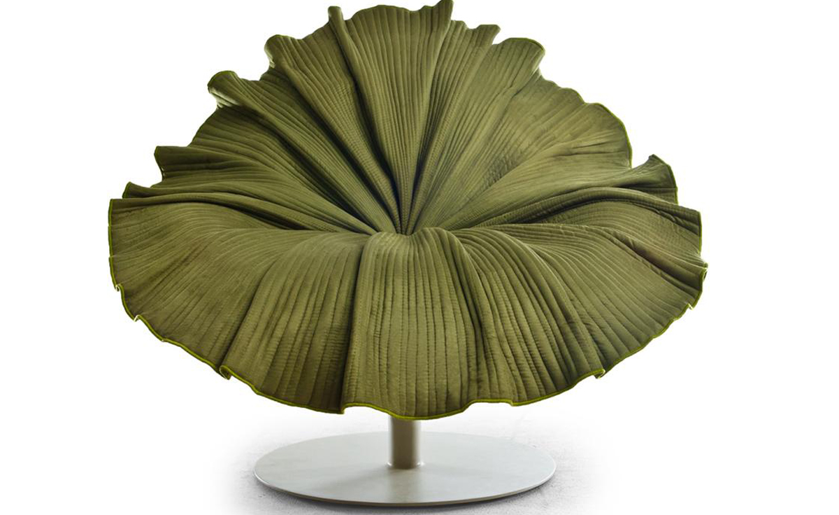 菲律宾设计师 Kenneth Cobonpue 设计了此款子名叫「开花 (Bloom) 」的椅子(Bloom Easy Armchair)。拟态一朵花盛开的模样,采用纯手工工艺将微纤维织物缝入碗状树脂椅座上,听起来就觉得很有科技感对吧,椅子下面的圆盘基座由钢铁制成,所以产品本身是十分的牢固安全的。