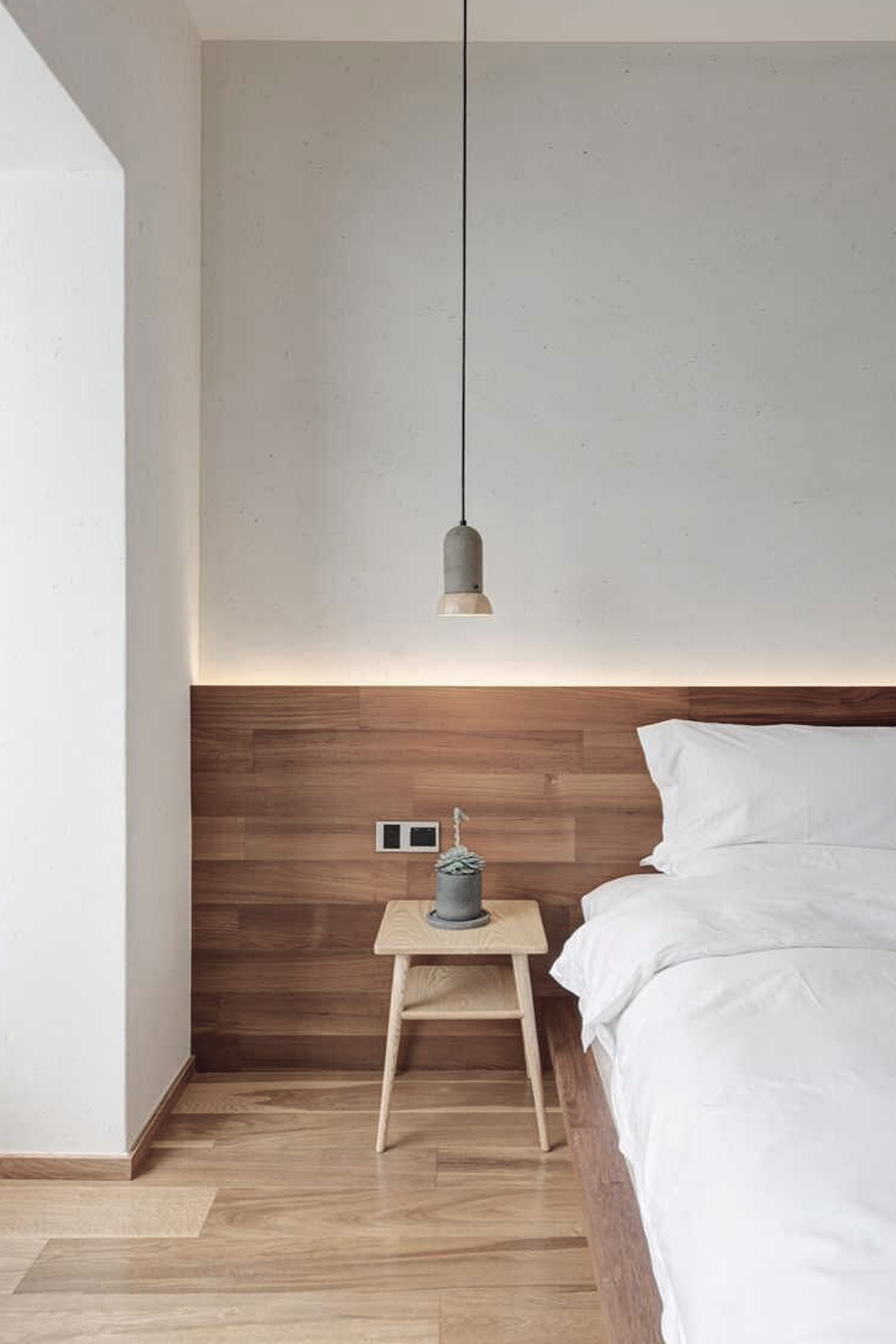 水泥是一种低调的材料,没有情绪,是亲近。 竹板料是一种天然能吸引人的环保材料,是亲近。把它们放在一起,是自然,是和谐。