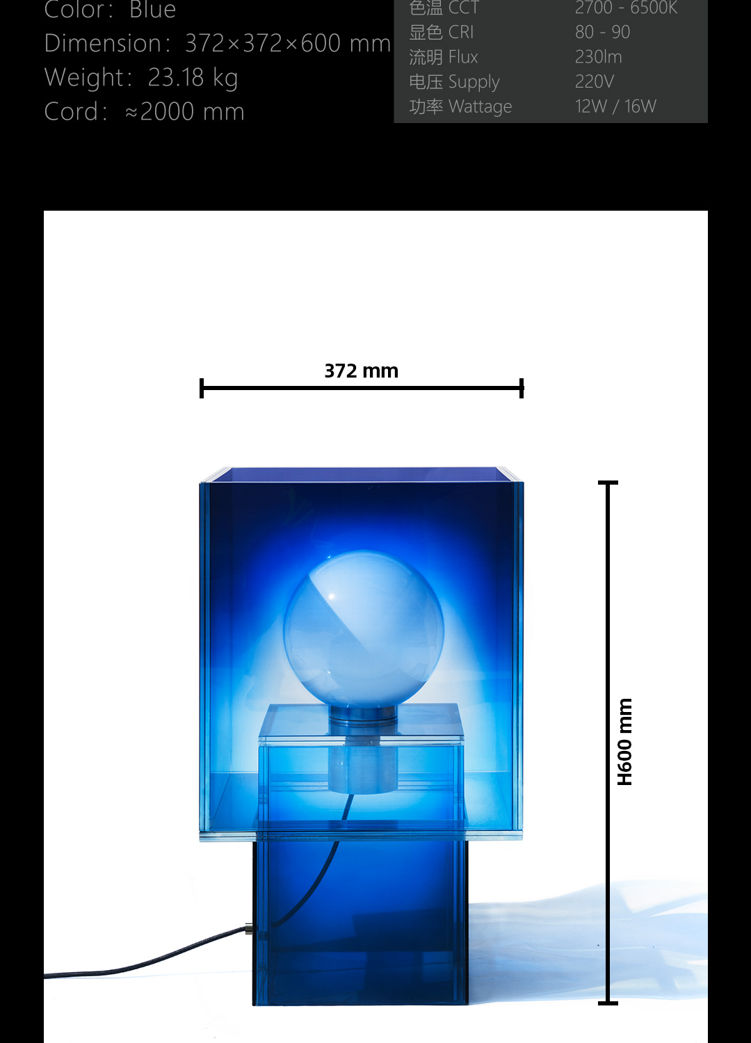 372×372×h600mm