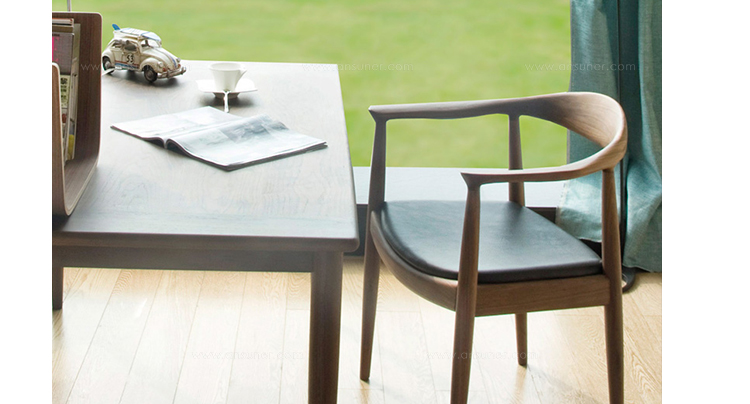 汉斯·韦格纳是把中国家具风在西方世界传播中最鲜明的代表。根据明式家具造型大方,比例适度 ,精于选料配料,重视木材本身的自然纹理和色泽等优点再糅合西方简约,人文元素设计的家具既古朴大气又舒适美观。“肯尼迪椅”是他创造的一系列中国椅中最具特色的椅子。
