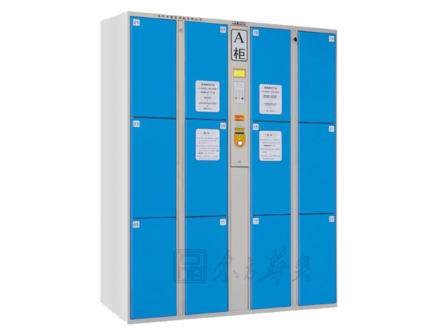 寄存柜柜体选用优质冷轧钢板,厚度不小于1.0mm,经冷加工成形后,用二氧化碳气体保护焊焊接装配而成,柜体结构坚固结实。柜体表面经除锈、除油、打磨、磷化处理后喷塑(不接受喷漆)。箱门背面增加纵向加强筋,提高箱门的防撞击能力。箱门两侧呈一定角度的弧线外形,增强箱门的防撞击能力,并且有效防止使用者因疏忽碰伤、磕伤。电控锁采用棘爪式结构,360度防撬、防插。