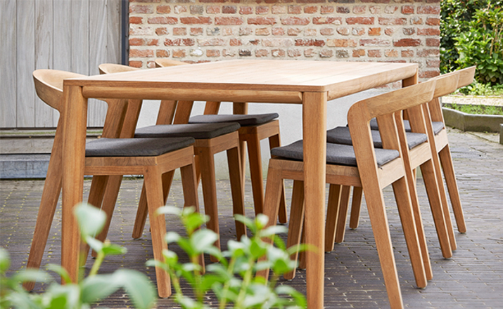 Elegant massive wooden table with an unique contemporary design,rounded edges at the table top and refined table legs.