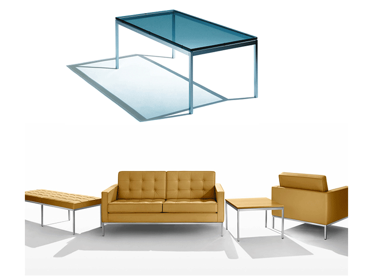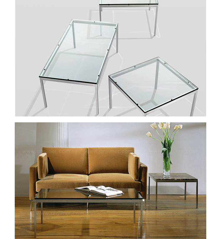 Florence Knoll Coffee and End Tables,designed to furnish the new interiors of postwar America,are scaled-down translations of the lines,gestures and materials of modern architecture.Consistent with all of her designs,the tables have a spare,geometric presence that reflects the objective perfectionism and rational design approach Florence Knoll learned from her mentor,Mies van der Rohe.