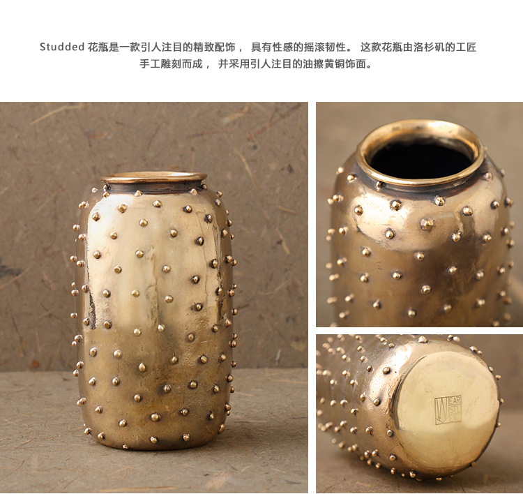 Studded花瓶是一款引人注目的精致配饰,具有性感的摇滚韧性。 这款花瓶由洛杉矶的工匠手工雕刻而成,并采用引人注目的油擦黄铜饰面。