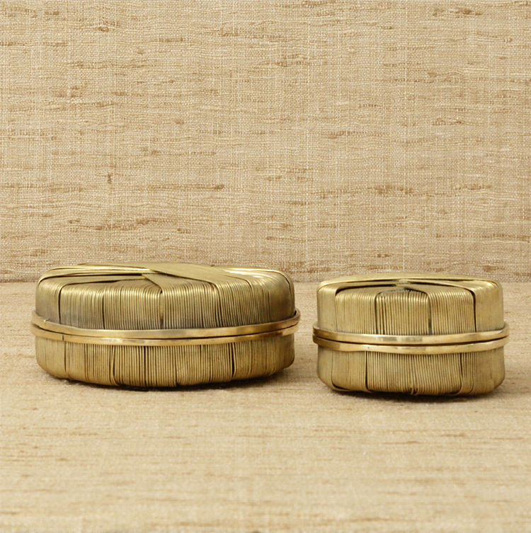 这款黄铜线包裹盒采用洛杉矶手工制作,顶部和底部饰有verde铜绿色细节。 这个盒子是床头柜或梳妆台的完美选择。