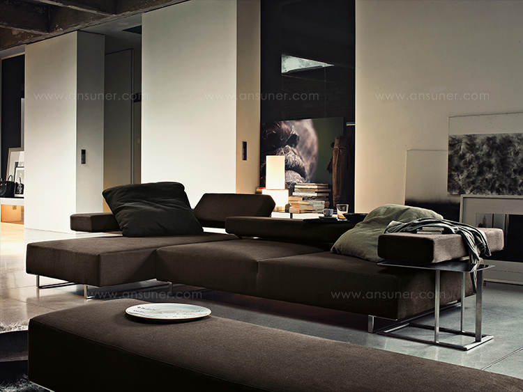矩形形状的不锈钢咖啡桌,作为阁楼沙发的补充服务元素,它们可以自由地和沙发或扶手椅进行组合。