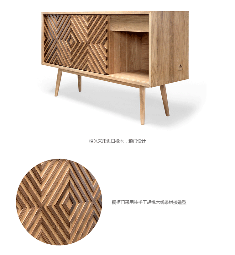 Casanova餐具柜:卡萨诺瓦是一块实木在100%,这可以是一个电视柜或简单地作为一个餐具柜。 门上的图案复制是由块橡木,胡桃木是固定的,熟练的工匠工作结合高质量的材料。 卡萨诺瓦是由五个空间:两个橱柜与滑动门,两个抽屉和一个开放的空间,两个可调节的架子,提供一个最佳的存储空间.