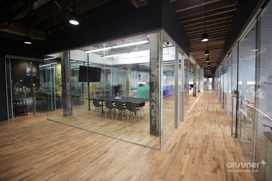 这处面积约4330平方米的联合办公场地,位于布鲁克林区的郭瓦纳斯(Gowanus),一个成熟的工业区。近年来对城市基础设施的改造与建设让这里恢复了社区活力,涌现出大量艺术家的工作室、潮流餐厅和公寓大楼。沿着郭瓦纳斯运河,随处可见临时搭建的艺术画廊和另类音乐场所。